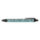 Personalise this pen with your business information. This is a zebra print pattern in black and turquoise/teal.