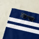 Personalises name monogram navy blue and white stripe beach towel. Personalised beach towel with bold athletic typography. Cool outdoor summer accessories for beach, travel or pool. Customisable colours. Perfect for Father's Day or Birthday! Make one for best dad, world's greatest father, son, brother, friend, grandpa, boyfriend, co worker, sister, daughter etc.