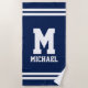 Personalises name monogram blue and white stripe beach towel