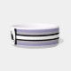 White ceramic cat food bowl with four tone stripe, white and black as the foundation, and any coordinating colour you choose at the "customise" option (within the personalise option) will appear in two tones .HAMbyWhiteGlove. Shown here in the colour Lavender.