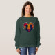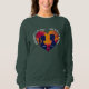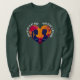 Whether you are relaxing in a cozy reading nook, working in a creative office space, or heading out for a casual date, this personalizable sweatshirt ensures high visual quality and comfort. The rich deep forest green backdrop makes the romantic sunset colors of the heart pop, allowing your customizable names and dates to stand out with elegant clarity.