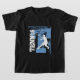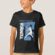 Personalizable tennis t shirt for boys Cool sportswear clothing for tennis players and fans. Personalise with name and / or monogram initial letter. Fun sports clothes for athletic boys and girls. Classic blue and white colours with silhouette of a player folding a racquet playing a forehand shot.