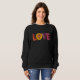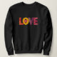 Perfect for cozying up in a reading nook, adding a pop of romance to your office attire, or keeping warm during a sunset stroll, this basic sweatshirt offers unparalleled visual clarity and comfort. The rich black canvas makes the vibrant, textured lettering stand out, ensuring that the message of love remains the focal point of your ensemble. Its versatile style transitions effortlessly from a relaxed nursery setting to a lively social gathering.