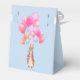 Personalize Peter the Rabbit in a pink jacket with butterflies and balloons favor box with your child's name and date of birth.