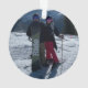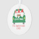Photo personalized Christmas ornament with three adorable gnomes in a green truck. Personalized the front of this ornament with families last name and year and add a photo to the back.