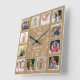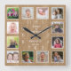 Personalized 12 Photo Collage Frame Rustic Burlap Square Wall Clock