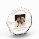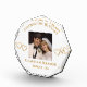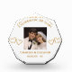 Add the couple's photo, names and 50th wedding anniversary date for a lovely keepsake photo block. This elegant transparent gem shaped photo block will look beautiful with the couple's photograph. The faux gold tan script is editable. Celebrating 50 years can be customized to any anniversary year. The two original designer golden hearts add a romantic touch. Give a unique custom photo keepsake that is a true treasure. Browse my golden heart 50th wedding anniversary collection for coordinating party supplies and decor.