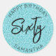 Personalized 60th Birthday Blue Glitter Sixty Classic Round Sticker