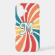 Bursting with multiple colors, the sunburst pattern phone case features a 70s, retro inspired design. The cellphone cover is ideal for accessorizing summertime outfits or everyday use for those who love color. Personalize the case by adding an initial.