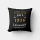 A personalized classic throw pillow design for that birthday celebration for somebody born in 1936 and turning 90. Add the name to this vintage retro style black, white and gold design for a custom birthday gift. Easily edit the name and year with the template provided. A wonderful custom black birthday gift. More gifts and party supplies for that party celebration available with the "Legendary" design in the store.