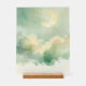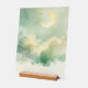 Create a serene nursery centerpiece with this custom acrylic sign featuring a glowing crescent moon, soft mint and cream clouds, and twinkling golden stars painted in delicate watercolor. Below the celestial scene, a Spotify QR code connects directly to a soothing baby lullaby playlist for peaceful naps and bedtime routines.