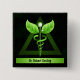© Sunny Mars Designs - Personalized Dark Green Caduceus Alternative Medicine Symbol Square Pin-Back Badge – Unique medical or holistic square pinback button, badge or pin with modified Caduceus symbol with leaves and vines instead of wings and serpents. Concept for alternative medicine or a combined use of alternative medicine and conventional medical practices.