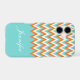 Modern aqua blue, white, orange chevron pattern. Easy to personalize.