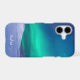 This personalized iPhone case features a beautiful image of Northern Lights, aka Aurora borealis, on a night sky and a customizable name in a white handwriting font at the bottom.
