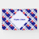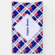 Banner features the red, white, and blue Australian Flag with the word AUSTRALIA underneath in the colors of the flag. Design is tiled for artistic effect. A white space of squiggly squares holds a spot for a name. Cool for family reunions, parties, events, and Aussie holidays.