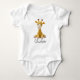 This 100% soft cotton baby bodysuit has an original digitally designed image of a crochet toy giraffe, allowing room for a personalized name to be placed underneath, and is perfect for a unique baby shower or birthday gift etc.