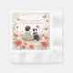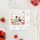 Girl's baby shower personalized paper napkins. Sweet baby girl sitting next to her little puppy dog in a patch of pretty watercolor flowers. There is a sweet sentimental poem on the napkin about a baby girl and a puppy starting their life together. Sage green and red wildflowers and butterflies background.
