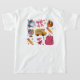 Cute personalized back to school t-shirt with custom name on the front and colorful school icons on the back. Perfect for kids starting a new school year, first day of school outfits or a thoughtful personalized gift.
