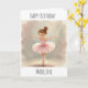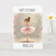 A sweet birthday card for a little girl. A cute Caucasian little girl ballerina in a pink tutu illustration on the front of the card. On the inside is a coloring page to color and a sweet birthday and ballerina inspired poem.