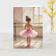 A sweet birthday card for a little girl. A cute little girl ballerina in a pink tutu in a ballet studio illustration on the front of the card. On the inside is a coloring page to color and a sweet birthday and ballerina inspired poem.