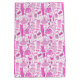 This personalized pattern is my take on the current barbiecore trend inspired by the 2023 film, but it's also perfect for anyone who loves pink or remembers the fashion! I drew lots of lovely 90's and 2000's fashion clothing, sunglasses, jewelry, shoes, bags, a cowboy hat and makeup, lots of details and all in tones of hot pink and soft pink! Three background colors coordinate the gift bag with the available wrapping sheets perfectly, pink, white and lilac.