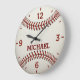 Custom Name Sports Room Decor. Step up to the plate with this personalized baseball-themed wall clock, featuring realistic red stitching details and a custom name in bold lettering. Perfect for baseball fans of all ages, this clock adds a sporty touch to bedrooms, game rooms, or man caves. Whether for a little slugger or a die-hard fan, this unique timepiece hits a home run as a thoughtful gift for birthdays, holidays, or team celebrations.