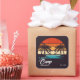 Retro Beach camp bachelorette party stickers to match your t-shirts. These personalized banner show a retro sunset with a saying to match the mood of your girls trip and a great backdrop to all your holiday photos.