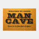 A perfect doormat for your man cave! It has a beer colored background with bubbles rising up and reads "Welcome to (Your Name)'s Man Cave - Come on in and have a beer!" in a bold serif font in black. It's fully editable too!