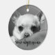 Black and white smooth haired chihuahua decoration which can be personalized with your own dog’s name for the tree!