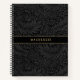 Elegant vintage black floral botanical pattern notebook with a custom name in stylish gold script typography.