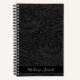 Elegant vintage black floral botanical pattern notebook with a custom name in stylish script typography.