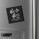 These custom magnets feature a simple black and white design with a clean black background and crisp white fonts for a timeless look. “Mr. & Mrs” appears in large handwritten script, paired with a classic serif font for a balanced and elegant style. At the bottom, the couple’s last name and wedding date are displayed for a meaningful finishing touch.