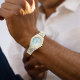 With its fluted gold bezel, silver-and-gold metal link band, and sophisticated blue marble face, this timepiece blends strength with sentiment. The gold Roman numerals and minimalist dial design create an effortlessly classic look — perfect for the modern gentleman who values timeless style.