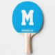 Personalized name or monogram ping pong paddle for table tennis. Sports game gift idea for men women and kids. Monogrammed letter initial design. Custom blue background color. Fun for player and school coach. College dorm accessories.