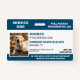 Professional Horizontal service dog ID badge in Blue and white with room for a photo of the service dog . Add name, title, and registration number. Add the handler's name and contact information too.