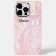 Personalized Blush Pink Marble iPhone 14 Pro Max Case – Gold Flecks & Subtle ‘LOVE’ Background | Elegant Custom Gift for Bride, Eid, Anniversary, Mother’s Day & More.