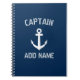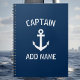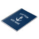 Personalized boat captain nautical anchor notebook. Custom office supplies with maritime theme. Add your own name or monogram. Vintage typography template with ship anchor. Navy blue and white or custom background color. Cute gift idea for dad, father, uncle, grandpa etc. Create your own logbook, diary, journal, daybook, agenda etc. Sailing and boating themed gifts.