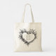 Boho chic personalized tote featuring a wild floral heart sketch. Artistic black and white botanical design. Customize this reusable bag with names. Perfect unique gift for bohemian weddings, bridal showers, bridesmaids, bachelorette favors, nature lovers, teachers, or stylish daily shopping.