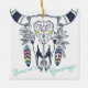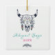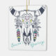 This Season's Greetings ornament features a Bohemian tribal skull decorated with colorful flowers, feathers and turquoise and pink text. *
