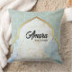 Personalized Bride Cushion | Light Blue Watercolour Marble & Gold Arch | Islamic Wedding Keepsake Pillow.