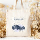 Personalized Bridesmaid Floral Dusty Blue Script Tote Bag