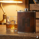 Personalized Brown Leather Hip Monogram Initial H Flask