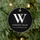 A modern minimalist personalized business Christmas ornament with business logo monogram initials and website. Personalize with your logo and create your own professional business Xmas ornament. Professional business holiday ornaments perfect for business gifts and business branding. A custom round logo Christmas ornament.