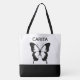 Custom black and white butterfly tote bag. Add your name to the center of the tote bag by using the personalized template.