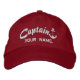 A dynamic personalized Captain cap in nautical red and white style embroidered hat sure to make an impression on, or off the boat. Make this star anchor design embroidery as unique as you are with your name, your location, or your boat's name.