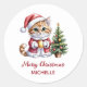 Personalized Cat with Santa Hat Christmas tree Classic Round Sticker