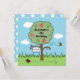 A sweet invitation to celebrate a birthday. The card features a colorful garden scene with an apple tree, a bumblebee buzzing around and a ladybird scuttling on the ground.