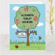 A sweet greetings card to celebrate a birth, which can be personalized with the name and date of birth. The card features a colorful garden scene with an apple tree, a bumblebee buzzing around and a ladybird scuttling on the ground.