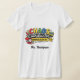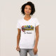 Featuring colorful school-themed graphics like a yellow bus, apple, and school supplies, this shirt captures the energy of teaching.