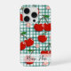 Add a sweet and playful touch to your phone with this adorable personalized cherry phone case featuring bright red cherries and delicate pink blossoms on a classic green gingham background. This cheerful fruit-inspired design blends cottagecore charm with fresh summer style, making it perfect for everyday use.